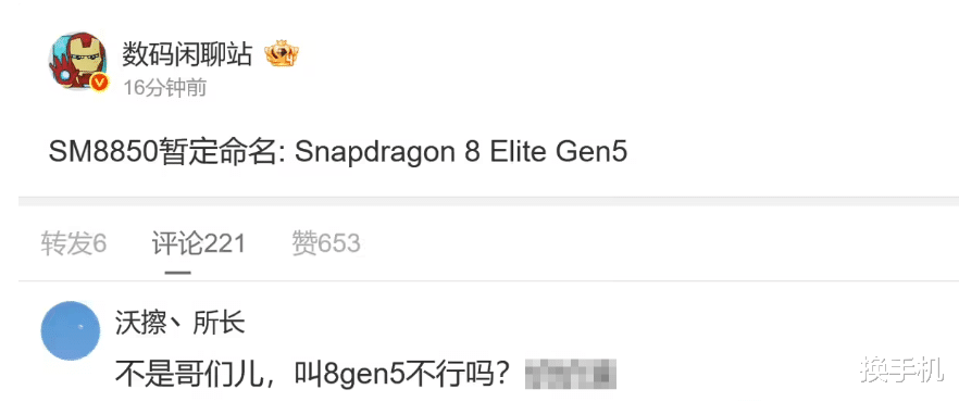若命名最终属实,该芯片对应的中文名很可能将是:“第五代骁龙8至尊版”。